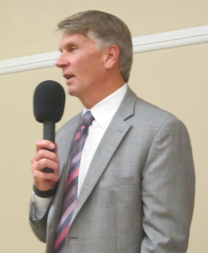 Attendance was excellent; I counted about 100 people in the audience at the beginning. (Let's have a round of applause for American Fork voters.) As usual, the candidates were available well before the formalities began and well after they ended, talking to voters individually and in small groups. There were two-minute opening statements. Most of the time, candidates had one minute each to respond to questions, but they were given two and a half minutes each to discuss road repairs and the proposed bond issue to fund them. The moderator said about half the questions submitted were on that subject. Finally, there were two minutes each for closing statements, but some of the statements were much shorter. All five closing statements, plus some concluding thoughts from the moderator, totaled less than seven minutes. (I'm not sure what candidates leaving that many minutes on the table might mean. Maybe the timer wanted to go home. Maybe they all wanted to go home. Maybe they figured they'd already made their points. Maybe the world is about it end.) As before, the questions were submitted by the audience in writing, then selected, merged, amended, etc., as necessary by the moderator. As before, I'll confine myself to reporting and summarizing in this post. In the following post I'll add some analysis and commentary. So if you just want my notes on what was said, or links to audio files, you can ignore the second post. It's your choice. I Eschew Redundancy (But I Do Like Big Words) I suggest you read first what I wrote about last week's event, for this reason: I'm not planning to repeat myself very much, and I'm not planning to recapitulate everything the candidates said -- especially when they repeated themselves, which they naturally did quite a lot. Most of the statements were similar to last week's; some of the questions and answers were similar, too. That's not a problem; that's just how these things go. I'll highlight the new questions and the candidates' answers, and give somewhat less attention to things that were said last week, except where they're useful for context. For the full picture, there's always the audio. Notes About the Audio By comparison with last week's venue, the room was more alive acoustically. The audio system was inferior and prone to noise. And the crowd was bigger. So these recordings are noisier. Still, the audio is usable, if you want to hear exactly what the candidates said and how they said it. In case anyone's interested at a geek level, this time I did something I didn't think necessary last time: I processed the audio with some software (Audacity), removing a lot of the noise -- but not random coughs or the guy behind me rattling his papers -- and compressing the dynamic range. The noise removal slightly degraded the quality of the recorded voices, but in this case it's worth it. If anyone wants the unedited audio files, I'll be happy to send them. The Cast of Characters This time, I remembered to put a memory card in my camera. The photos aren't great, but at least you'll have some idea what the candidates look like. Bill Thresher
